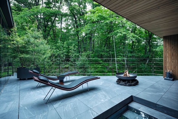 「NOT A HOTEL KITAKARUIZAWA IRORI」には四季折々の景色が楽しめる天然温泉やサウナなども備え、リラックスしながら快適に過ごせる設備も充実。