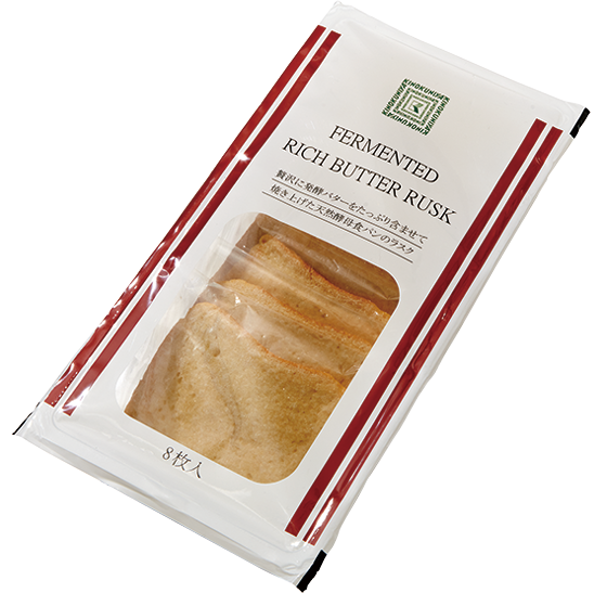麹の天然酵母を使って発酵させた角食パンをラスクに。ダブルバター製法をとることでコクと爽やかな後味のよさを両立し、麹も発酵バターの旨味もどちらも感じられます。