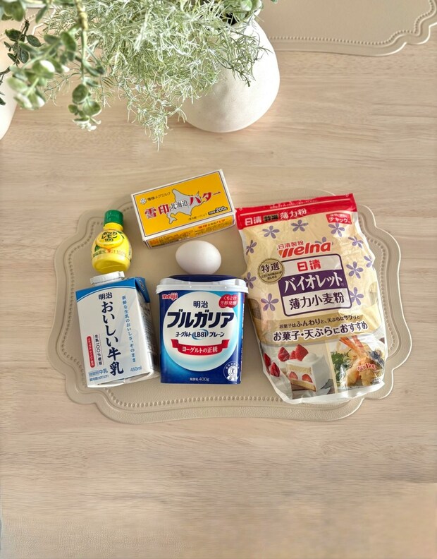 完成したパンケーキがまさに想像するお店のもので、これが自宅で作れたら素敵です…!ヨーグルトやレモン汁は今まで入れたことがなく、どんな変化があるのか楽しみに。