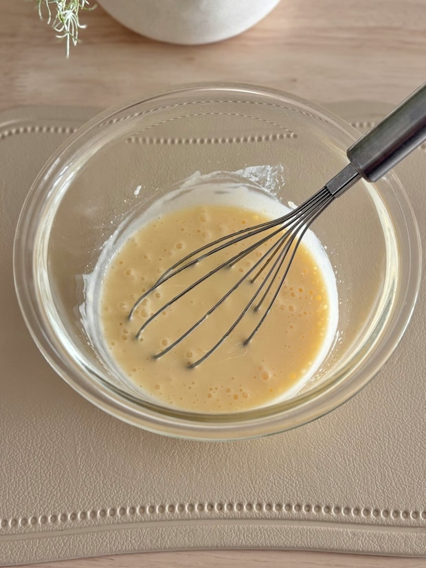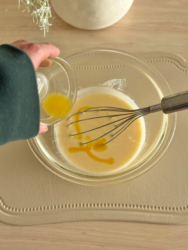 バターを加えたあとは浮いているバターが見えなくなるまでしっかり混ぜてください。