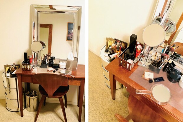 基本的にコスメのストックは空調の安定したクリニックに。ドレッサーに並ぶのは、その都度持ち帰ったアイテムのみなので、わりとミニマム。