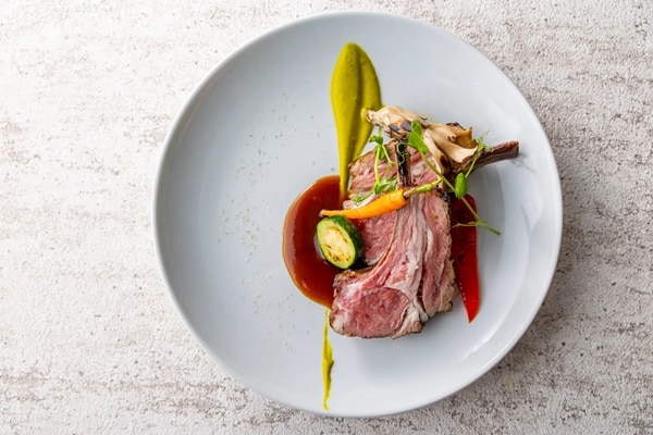 「オーストラリア産ラムチョップ ローズマリーのジュ グリーンマスタード」は、香り高いローズマリーで仕上げた“ジュ”という肉汁をベースにしたソースと、グリーンマスタードの鮮やかなアクセントが、ラム本来の旨みを引き立てる。