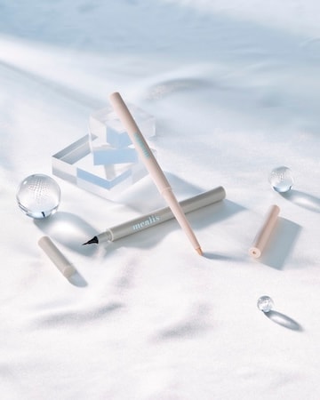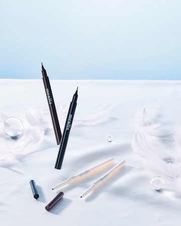 リキッドアイライナーは、初心者でも描きやすい極細フェルトタイプのリキッドアイライナー。ウォータープルーフ処方でにじみにくく、目尻の跳ね上げや目頭の切開ラインもきれいに描ける。