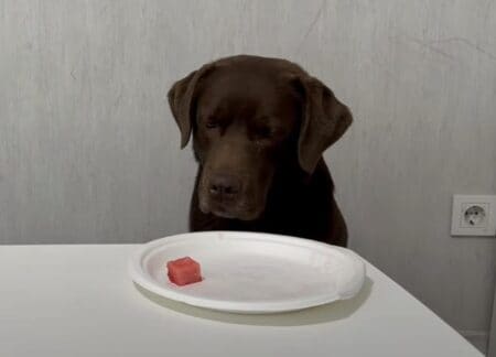 犬さんはスイカを見ないようにして