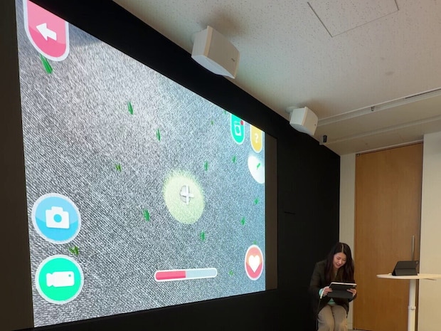 AR(拡張現実)とは、カメラ越しの現実世界にデジタルの映像やキャラクターを重ねて見せる技術。たとえばカメラを床に向けると、小さな芽がピョコンと顔を出したり、ひっそり隠れていた卵がコロンと現れたりします。