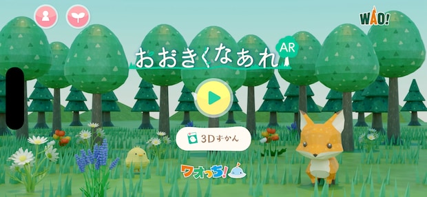 さらに、動物や植物が目の前で成長していく様子を楽しめるアプリ『おおきくなぁれAR』(対象年齢/3歳~)のデモも見せてもらいました。