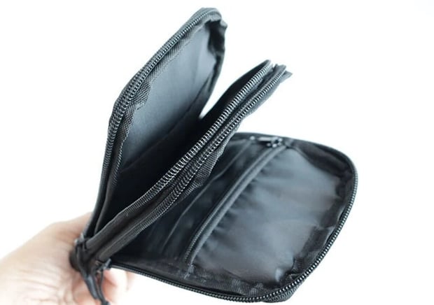 スリムに見えて収納力抜群!メインスペースは2層式で整理しやすく、ファスナー付き小銭入れとカードポケット付きのお財布機能も◎
