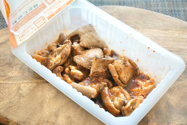 豚ガツと牛小腸の2種類のホルモンが、コチュジャンで味つけられた冷凍食品です。