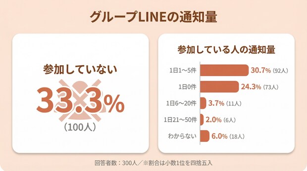 グループLINEの通知は「参加していない」33.3%、参加者でも1日0〜5件が中心