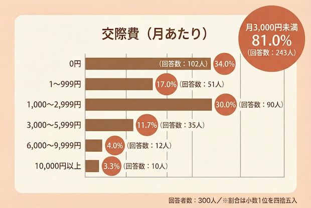 交際費は「月3,000円未満」が81.0%、一方でゼロではない支出も