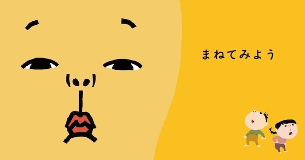 そっくり真似できても、できなくても、なんだか楽しくなっちゃう! 子どもの反応だけでなく、親子のコミュニケーションも自然に促す絵本です。