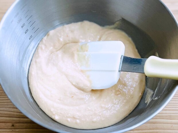 ボウルに生地の材料をすべて入れ、ムラがないように混ぜ合わせます。