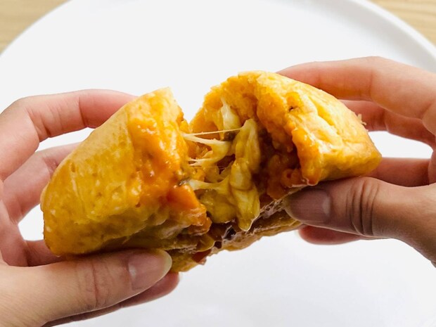 ほんのり甘いふわふわの生地に、具材の塩味が絶妙なハーモニー。チーズのとろけ具合もたまらず、ひと口食べたら最後までノンストップのおいしさですよ。