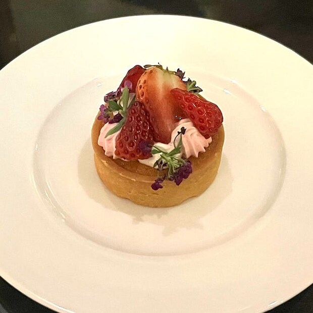 「いちごのタルト」は、サクサクの小さなタルトにフレッシュないちごをトッピング。しっとりと芳醇なバターが濃厚なクレームダマンドやホイップクリーム、桜のホイップクリームも合わせていますが、いちごの酸味によって味わいはさっぱり。鼻からは桜の華やかな香りが抜けて、満開の桜に囲まれている気分に。いちごと桜の相性を感じる逸品でした。