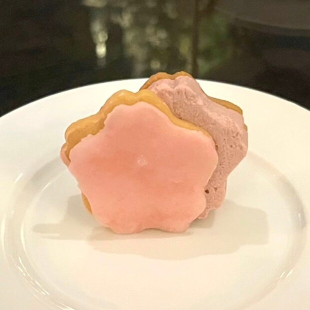 そのキュートな見た目に心ひかれたのは「桜餡バターのクッキーサンド」です。桜モチーフをピンクのチョコレートで表現したクッキーは、サクサクと軽い食感。サンドした桜餡入りのバタークリームは、こっくりととけ、桜の香りが口いっぱいに広がります。バタークリームと聞くとちょっと重たい印象でしたが、こちらは程よい口あたり。桜の香りも相まって、ペロリと食べられました。