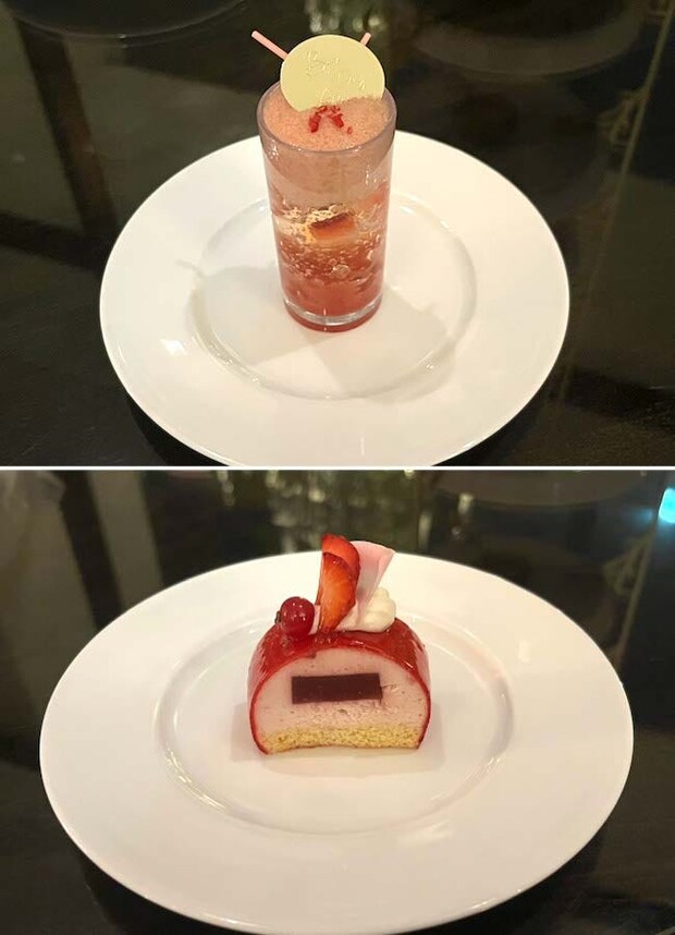 「いちごと桜のヴェリーヌ」は、さっぱりとしていて甘いスイーツの合間のリセットにぴったりです。芳醇な香りと爽やかな甘みのあるシャンパンジュレと、その中に閉じ込めた甘酸っぱいいちごが相性抜群。泡状になった桜のフォームは、桜の独特の風味がしっかり感じられます。ジュレとのコントラストが食べていて面白い!