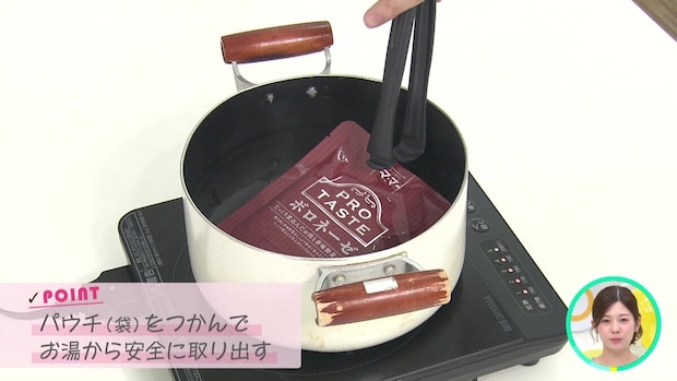 レトルト食品を湯煎しているときに、熱湯でやけどせずひきあげることができるほか…