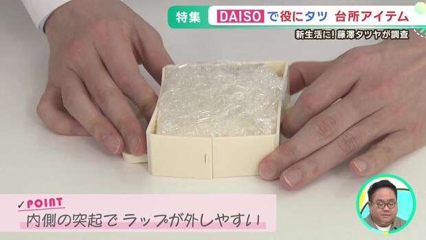 ストレスフリー: 内側の突起のおかげで、ラップがくっつかずスルッと取り出せる工夫も。