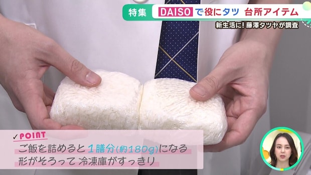 自炊派の必須作業「ご飯の冷凍保存」。手で包むと形がバラバラになりがちですが、これ(110円)を使えば解決です。