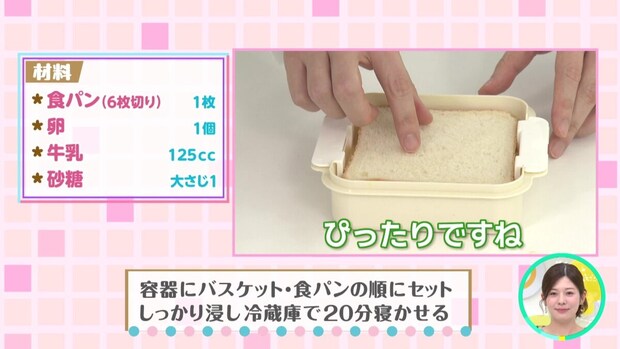 付属のバスケットにセットした食パンを投入し、冷蔵庫で20分浸す。