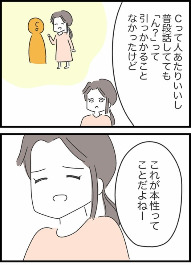 Cちゃんの普段の様子からはまったく想像できなかった本当の姿にAちゃんは驚き、ショックだったと思いますが、仕方ないと受け入れているようにも見えますね。すみれもバイトを代わってあげたときのことを思い出し、いろいろと考えてしまったのではないでしょうか。