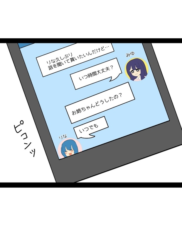 妹りなさんから、返信メッセージが。信頼できる相談相手がいて良かったですね。