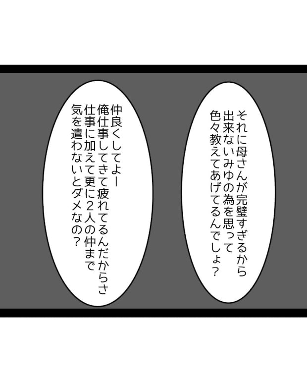 幸せな結婚生活を思い描いていたみゆさんは、夫の実家での暮らしに絶望。義母に愚痴を言われ、いじめられつらい毎日を過ごすのでした。そのつらさを夫・かずまさんに伝えても受け止めてもらえず、義母に強く影響されている姿に、みゆさんは孤独を深めてしまいます。