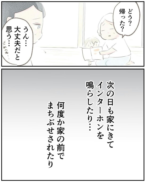 1週間、不審な人物がゆうさんの近辺にあらわれますが、徹底的に無視した結果、パタリと来なくなりました。どうやら、ゆうさん親子は無事に宗教から脱退できたようです。