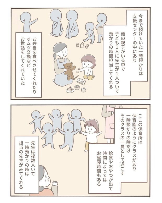 今までお願いしていた一時預かりとは預け方のスタイルが少し違うようです。毎回必ず預けられるわけではなく、お休みの子がいる時に限り受け入れ可能とのこと。その仕組みに戸惑いはあるものの、優しい雰囲気に安心感もありました。