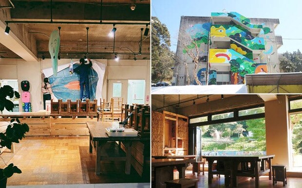 アートによるまちづくりをコンセプトに、アーティストの作品展示やイべントを行う交流拠点。力フェも併設
