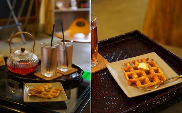 食を通じて里山の魅力を発信する喫茶。地産の玄米粉ワッフルや、自生するクロモジを煮出したハーブティが名物
