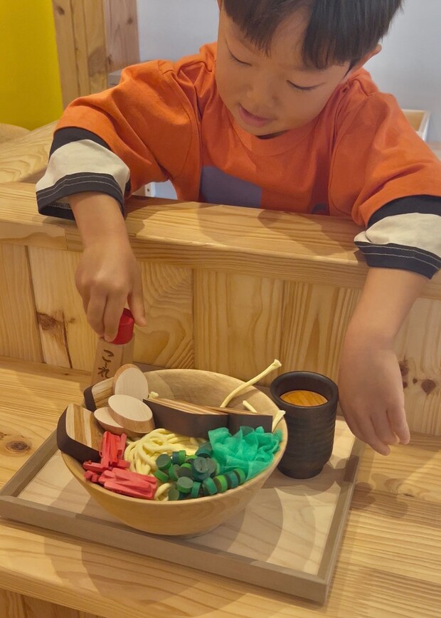 さらに、ハンバーガーやピザ、沖縄そばなどの食べ物をつくって遊べるキッチンコーナーも人気でした。
