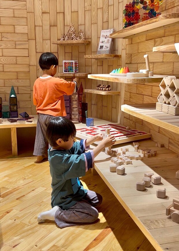 色や形、仕組みの違うオモチャが並び、子どもたちは時間を忘れて集中。