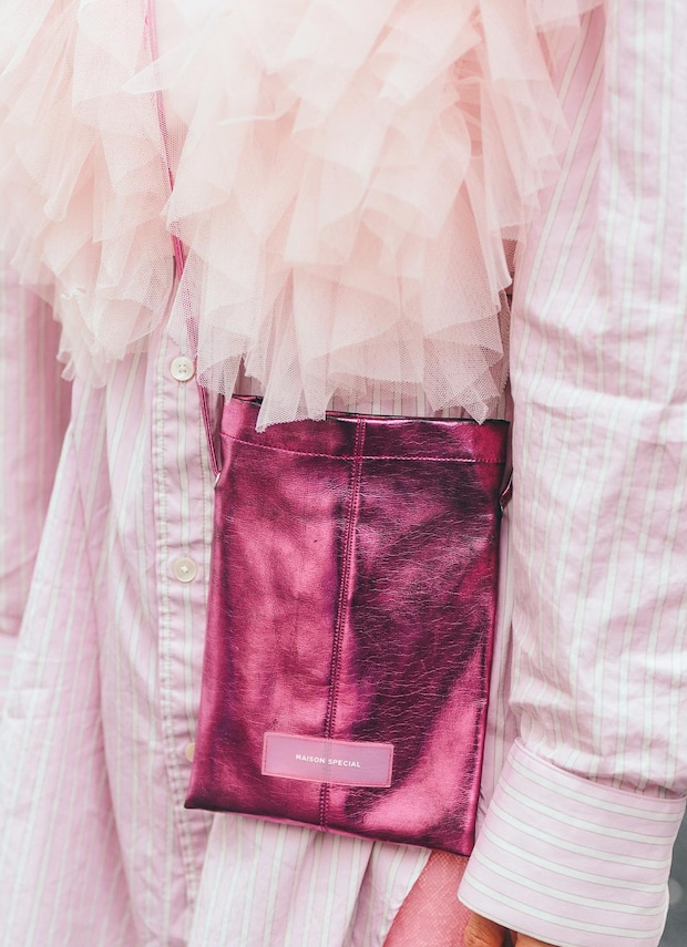 ペールピンクからヴィヴィッドピンクまで、家族全員でピンクのグラデーションを描いた春爛漫コーデ。チュールやメタリックなど素材でメリハリをつけて、立体感を出したのがワンカラーコーデのポイント。