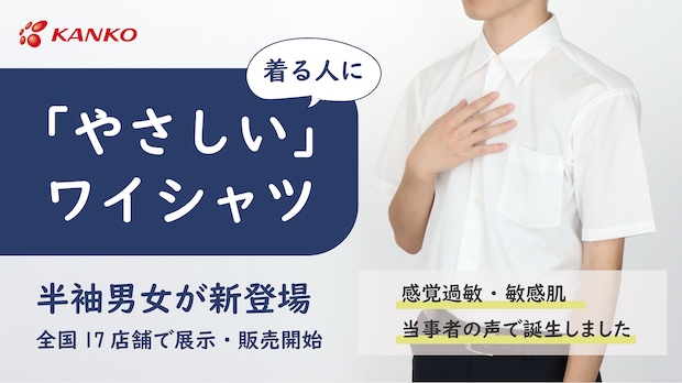 「やさしいワイシャツ」は感覚過敏の人をはじめ、敏感肌やアトピー肌、化繊アレルギーの人にも快適に着用してもらえるよう、素材や縫製仕様、デザインに配慮したシャツです。