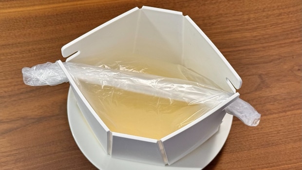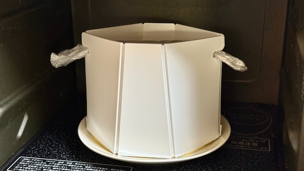 材料が混ざったら #アイラップホルダー にセット※し、耐熱皿に載せて電子レンジ(500W)で4分30秒加熱します。