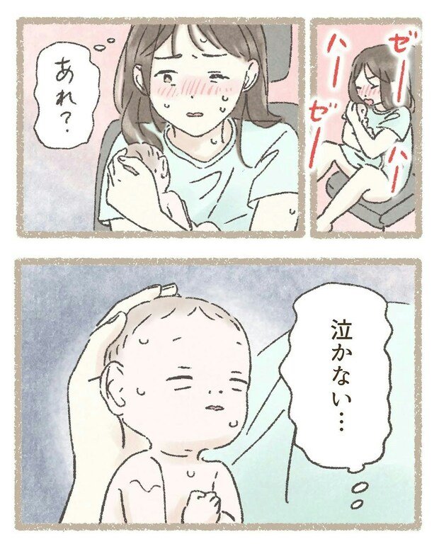 病院へ向かう車の中、わこさんは自分で自分の赤ちゃんを取り上げます。ところが、赤ちゃんは産声を上げません。