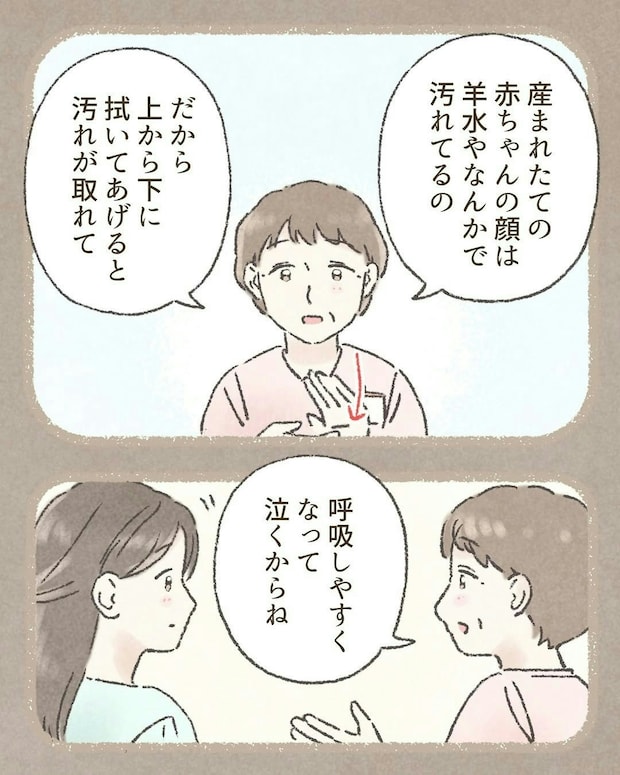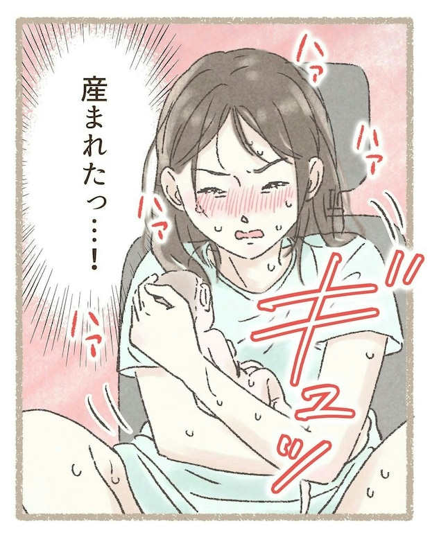 助産師のアドバイスを思いだし、赤ちゃんは元気な産声を聞かせてくれました。本当によかったですね。