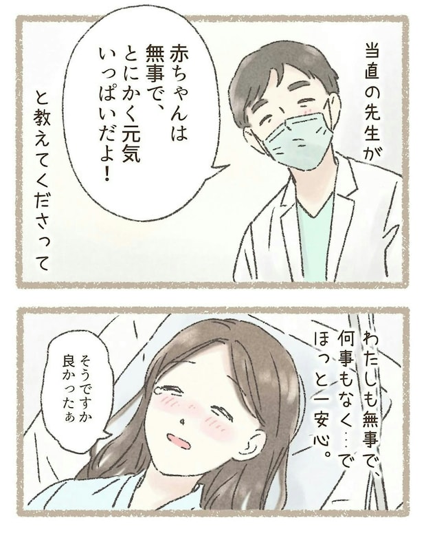 その後、病院に到着したわこさんと赤ちゃんは処置を受け、親子ともに無事であることを確認。ハラハラドキドキの出産劇でしたが、ようやくホッとしました。
