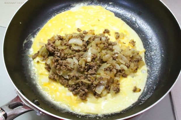 薄力粉がポイント!「ひき肉と野菜のオムレツ」を作ってみた!