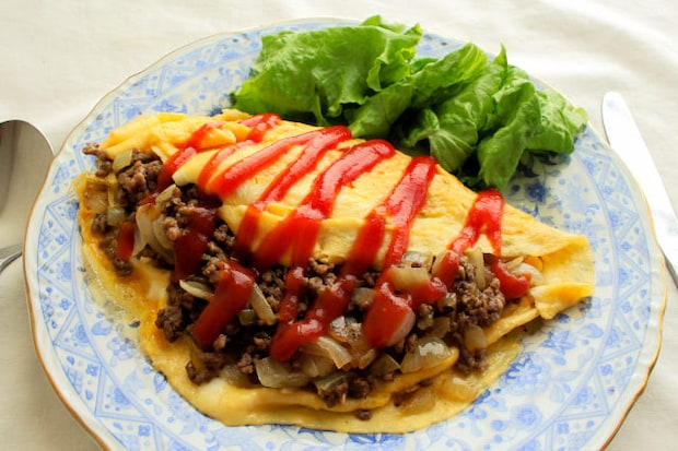 成形する時に卵が少し破れてしまいましたが、ケチャップをかけると目立たなくなりました。