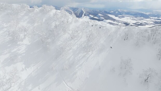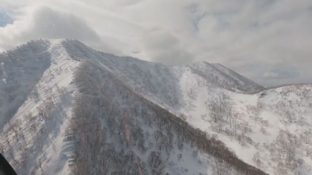 ヘリで向かうのは、尻別岳。この広いバックカントリーエリアをハーフパイプの銅メダリスト山田琉聖はどのように滑り倒すのか!?