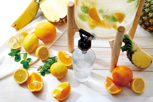 レモン、ミント、オレンジ、パイナップルを使用。健康志向だけでなく、味覚をリセットするドリンクとしても楽しめる。