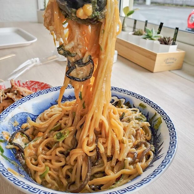 見慣れない植物たちの名前や生態あたりを調べていると、10分なんて時間はあっという間に過ぎ去り、目の前にドンと油そばとチャーシューめしが到着♪