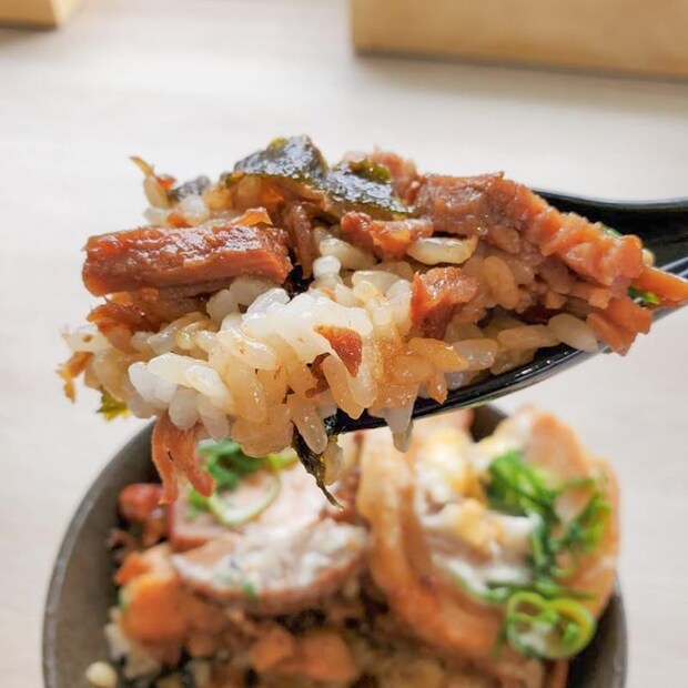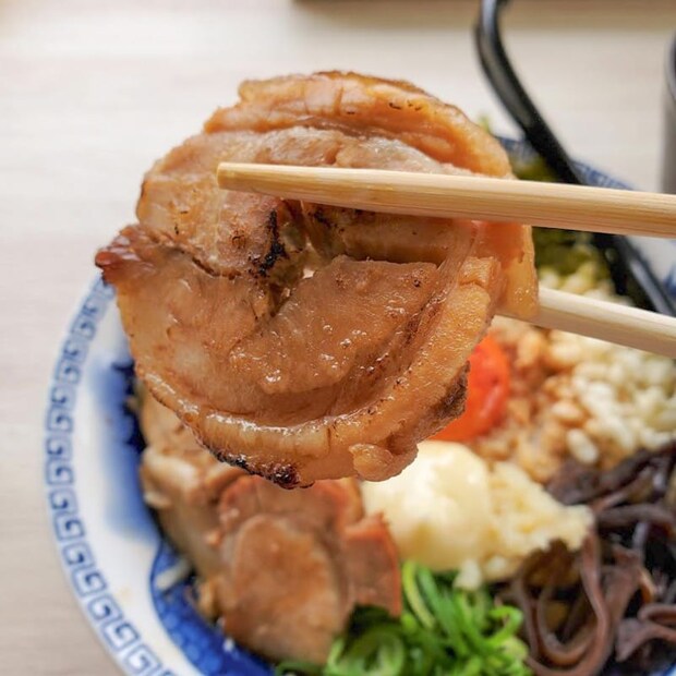 雨龍炙りチャーシュー油そば 1,100円・チャーシューめし 400円