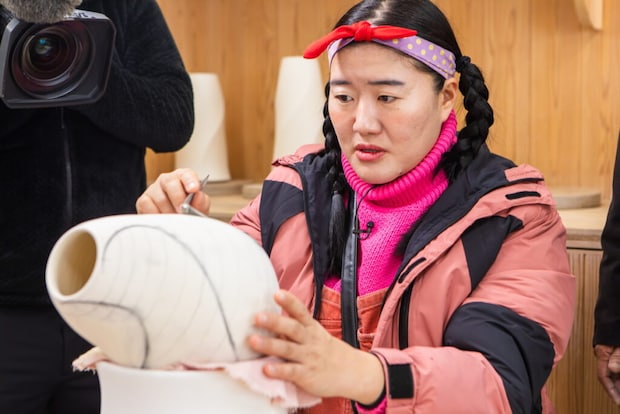 ここにいるのが、真っ白な磁器「白磁(はくじ)」の陶芸家作家・前田昭博さん。