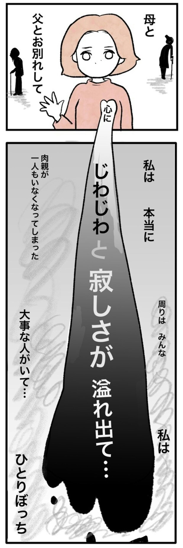両親を亡くした今、胸に広がる寂しさをまゆさんに打ち明けます。