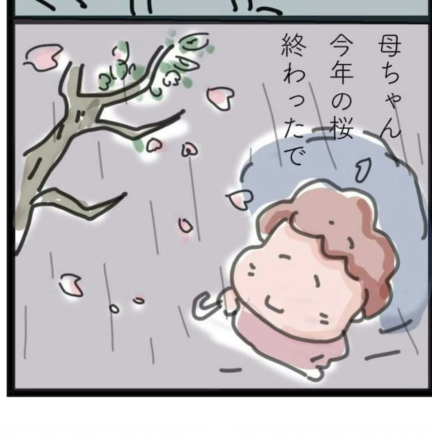 おかん子さんは、不思議な夢を見ました。夢の中で両親に再会し、生前果たせなかったお花見をしたようです。おかん子さんの最後の笑顔が印象的ですね。
