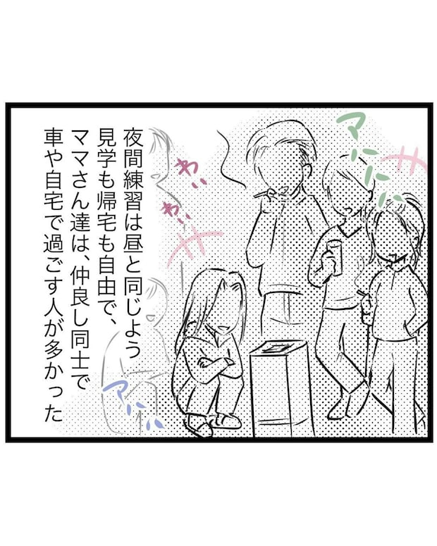 夜間練習の忙しさに追われながらも、送迎をして車内で待機していたもっつんさん。ところが突然コーチがやってきて、息子が参加対象ではないので帰るようにと告げられてしまいました。