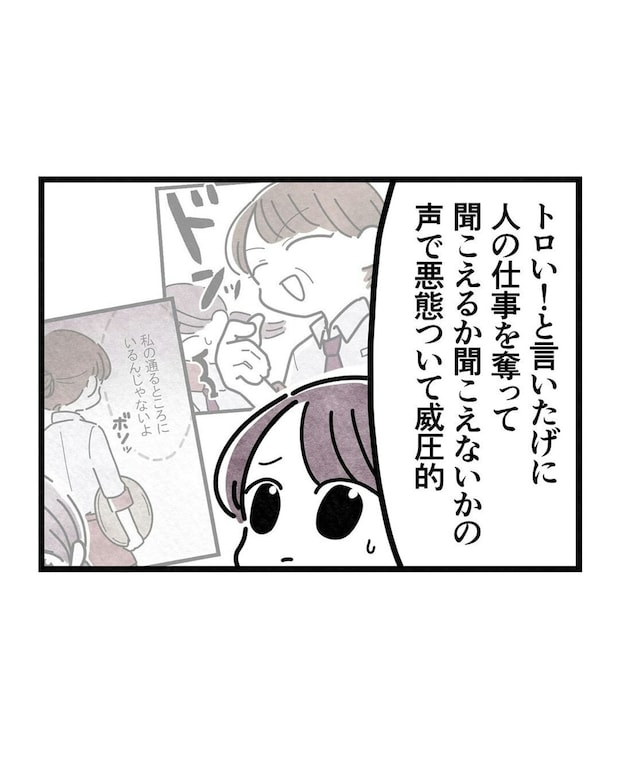 高校を卒業後、高校生の時から気になっていた好条件な飲食店で働くことにしたえみさん。無事に研修期間を終え安心したの矢先、ベテランパートの加藤さんに挨拶をすると無視され、通りすがりに小さい声で文句を言われたりと突然態度が変わり驚きます。機嫌なのかと思いきや、男性スタッフには今まで通り感じよく話しているのを見て嫌な気持ちになるのでした。